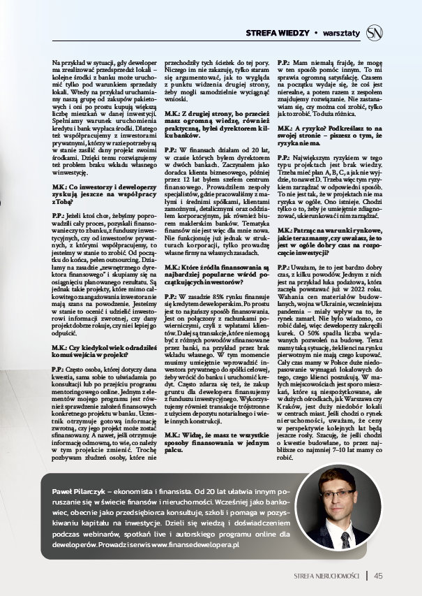 Pomagam finansować i komercjalizować inwestycje deweloperskie
